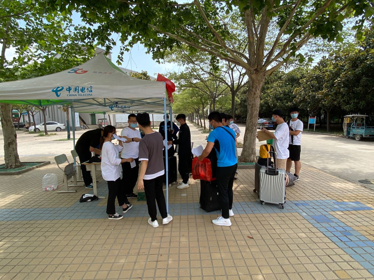 2020年6月5日,周口职业技术学院开元校区迎来了第一天的学生复学,根据学校领导的安排,体育学院领导、教师,做出了充分的准备。从学生进校门前的体温监测、手消毒、行李消毒到进校门的材料递交,登记,专门的教师负责行李运输,到学生进宿舍的登记。一系列的程序井然有序。 职业技术学院书记刘书记到体育学院复学检查点进行询问跟检查。体育学院徐书记做出了询问解答,并进行汇报。 体育学院复学学生22名均符合有关规定,安全复学。其辅导员李科长为学生上了疫情复学后第一个班会。